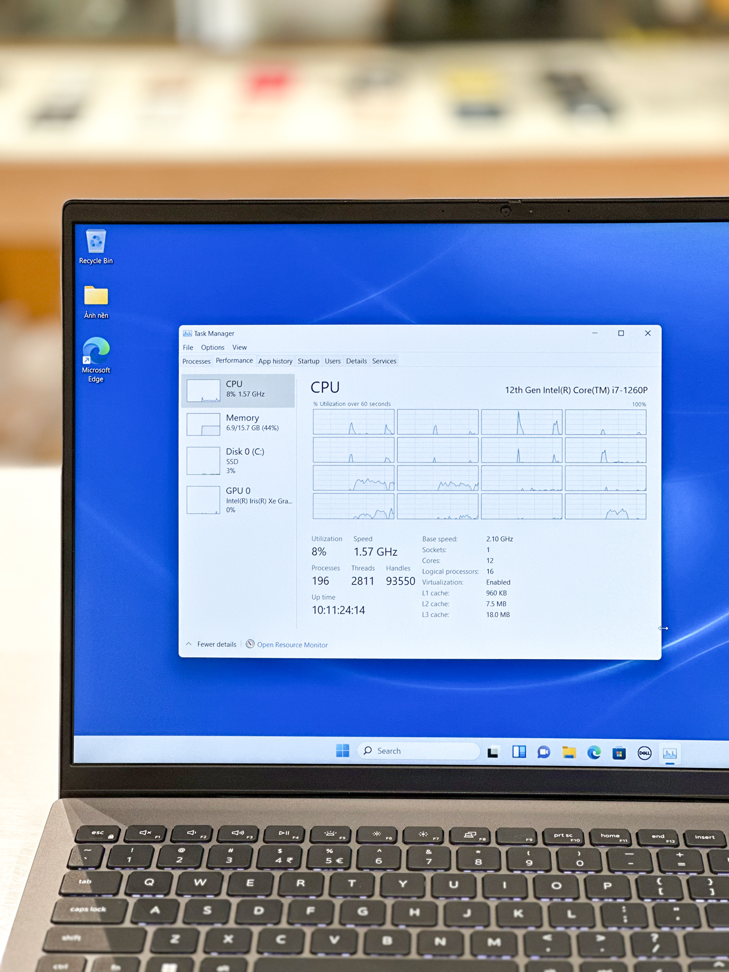 Về cấu hình, Dell Vostro 5620 i7-1260P sử dụng CPU Intel Core i7-1260P 12 nhân 16 luồng giúp chiếc laptop này có tốc độ xử lý đa tác vụ vô cùng mượt mà, đây là ưu điểm rất quan trọng của 1 chiếc laptop hiện nay. Để anh em có thể thấy được sức mạnh của con chip i7-1260P thì sau đây là bảng so sánh chi tiết hiệu năng của i7-1260P so với phiên bản i5 của nó là i5-1240P.